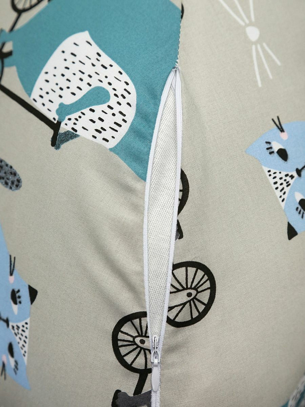 Внешний чехол на потайной молнии, которая расположена посередине внешней дуги, сшит из бязи.