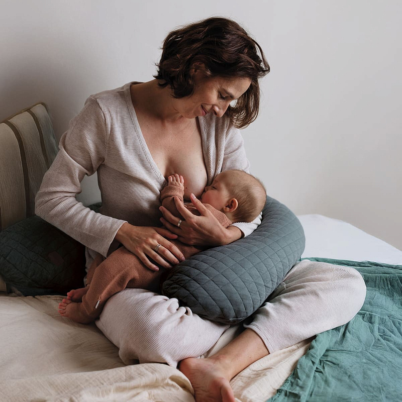 - Идеально подходит для кормления сидя и в положении на боку; также может укладываться и между колен