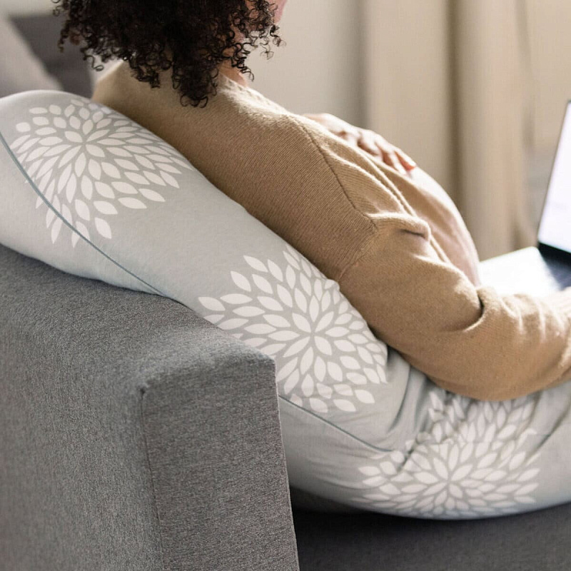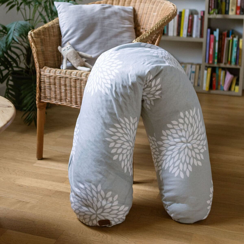 - Идеально подходит для кормления сидя и в положении на боку; также может укладываться и между колен