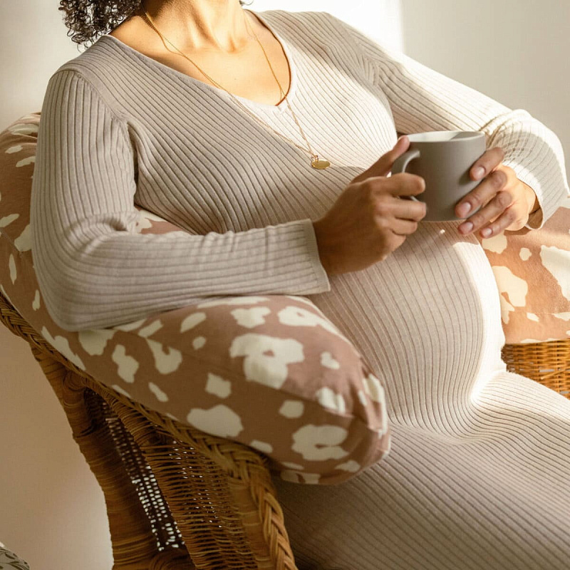 - Идеально подходит для кормления сидя и в положении на боку; также может укладываться и между колен
