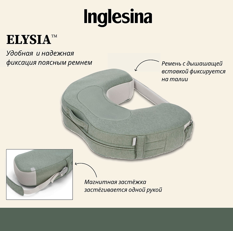• Подушка Elysia от Inglesina получила сертификат эргономичности IGR, который подтверждает, что изделие обладает отличными эргономичными характеристиками в соответствии со стандартами DIN EN ISO 26800 и EN ISO 15537.