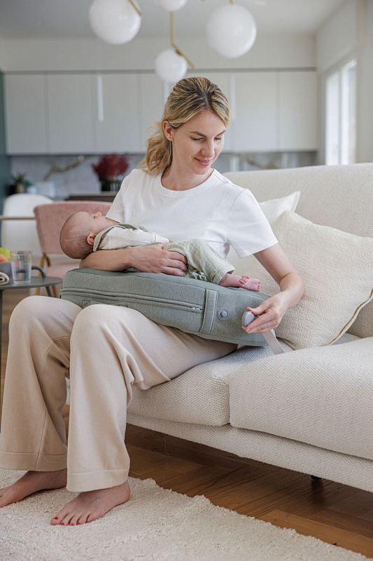 • Сторона «Первое молоко» идеально подходит для новорожденных (0–3 мес.): более твердая поверхность поддерживает голову, шею и тело ребенка, способствуя прикладыванию к груди, когда мышцы еще слабы.