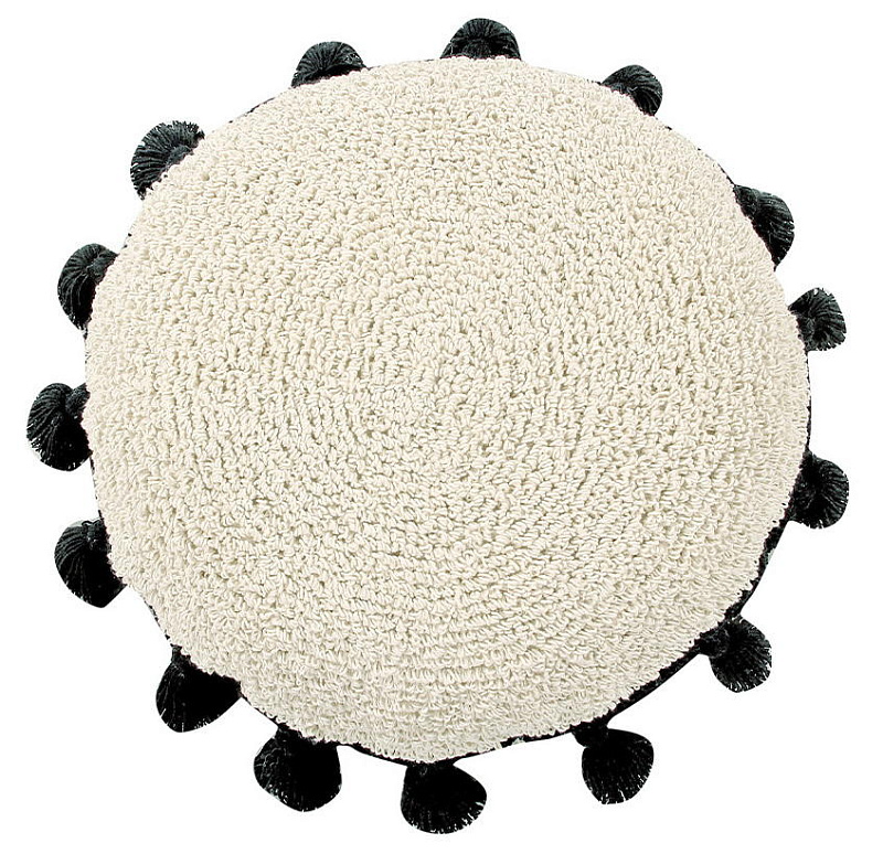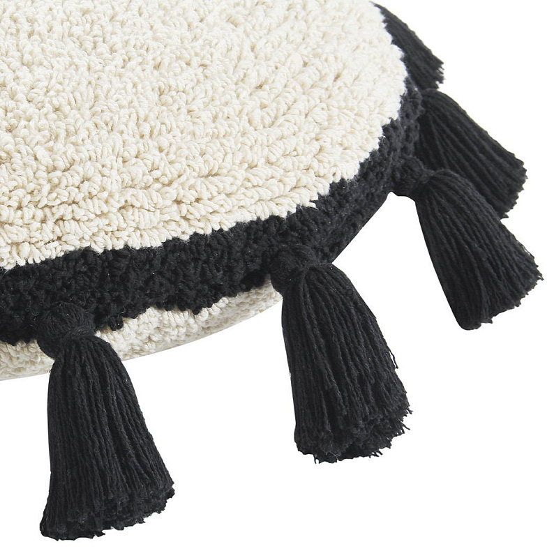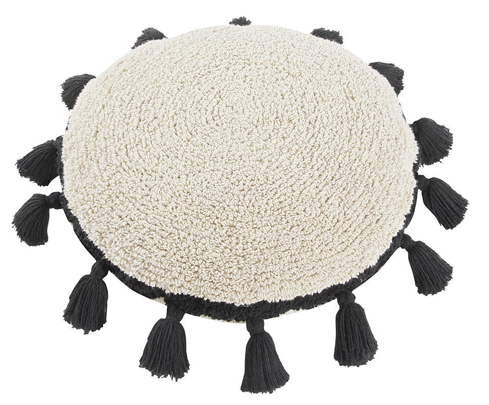 Подушка Lorena Canals бежевая с черными кисточками D48 см