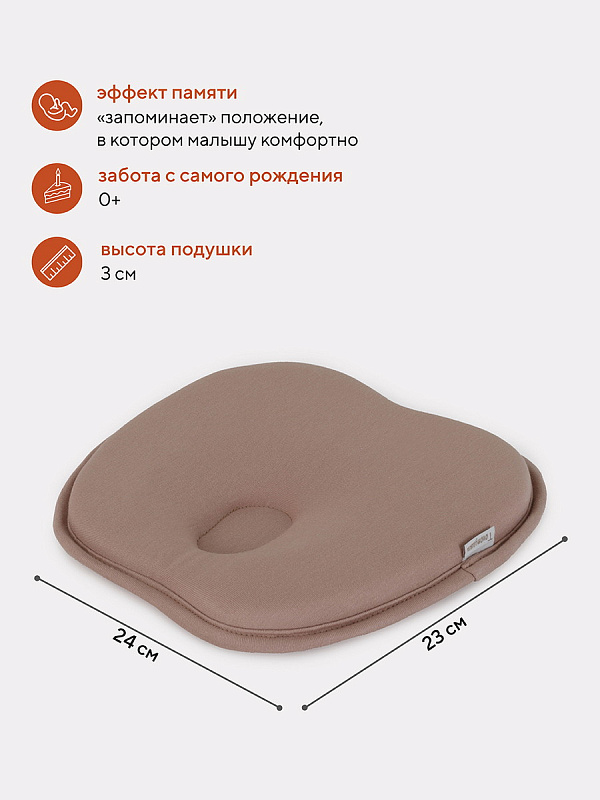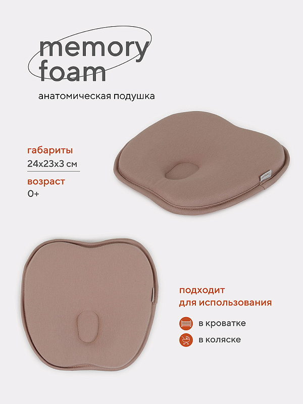 анатомическая подушка memory foam («запоминает» положение, в котором малышу наиболее комфортно) полностью расслабляет мышцы шеи, обеспечивая нормальное кровообращение и снижая мышечный тонус