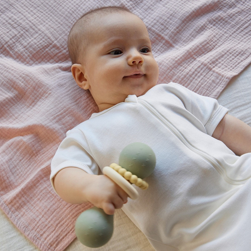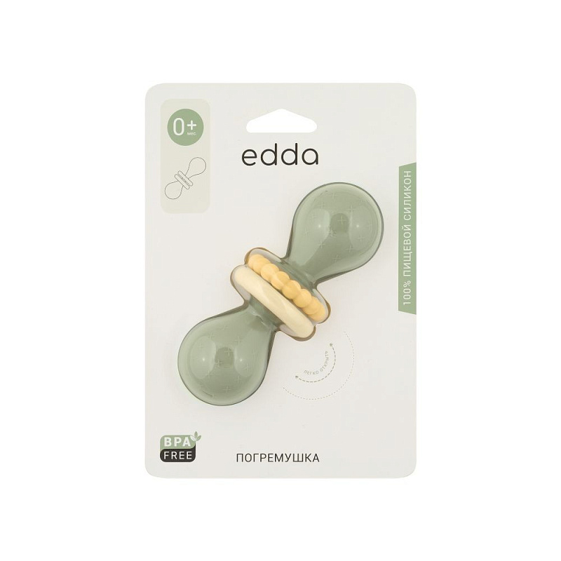 У лёгкой погремушки edda — эргономичная форма, которая идеально подходит для детских ладошек. Рельефная поверхность массирует дёсны при кусании, но не повреждает их, выполняя функцию прорезывателя. Игрушка тренирует сенсорное восприятие. На корпусе есть два дополнительных подвижных колечка для развития моторики. Погремушка из гипоаллергенного силикона издаёт успокаивающий звук и развивает ребенка через игру. Спокойные цвета игрушки гармонично впишутся в домашний интерьер.