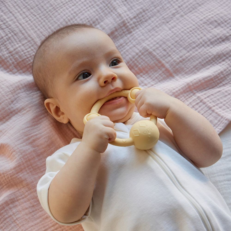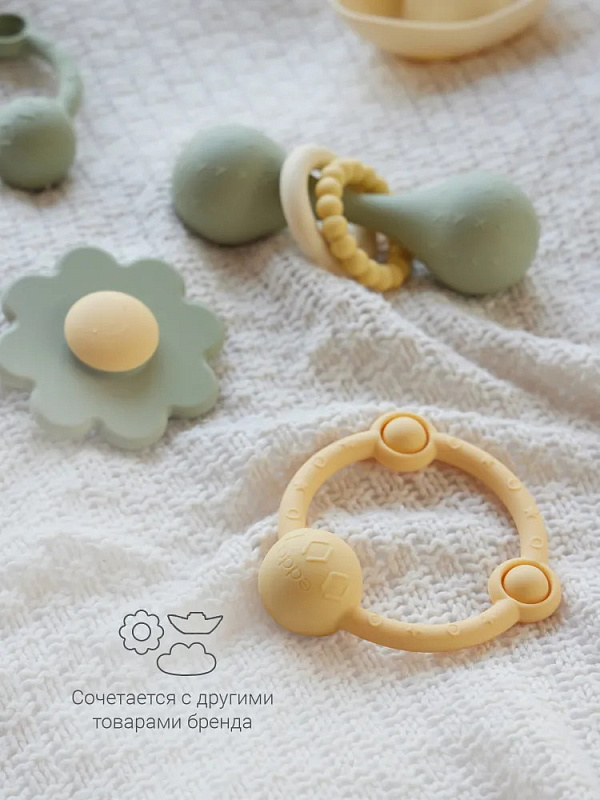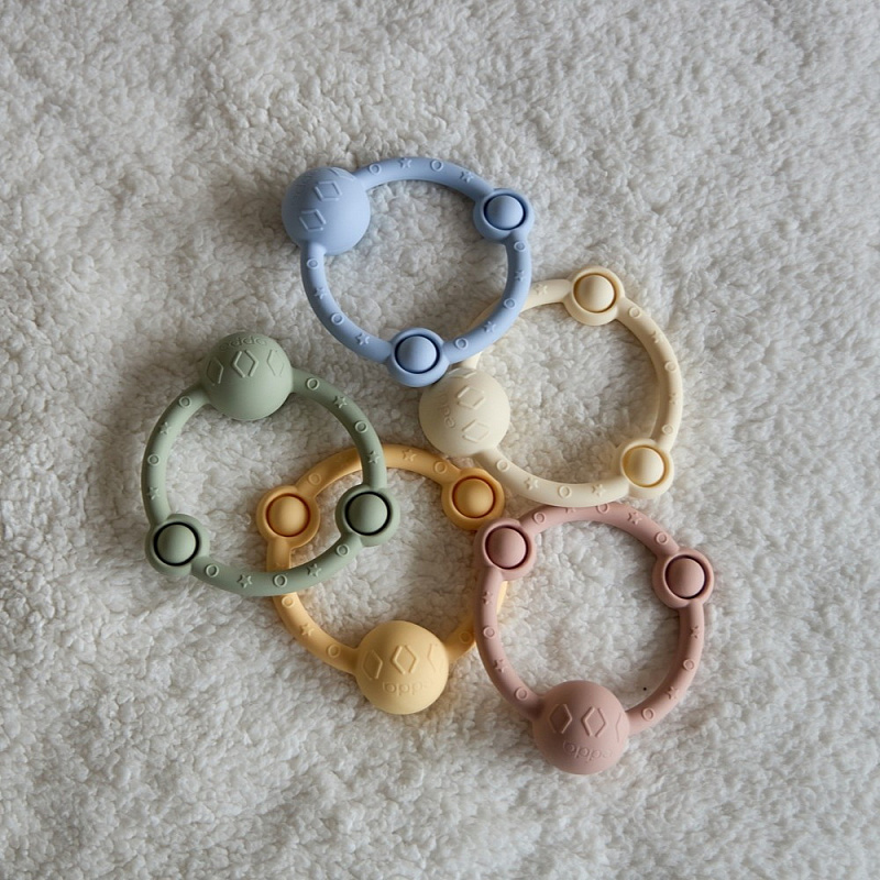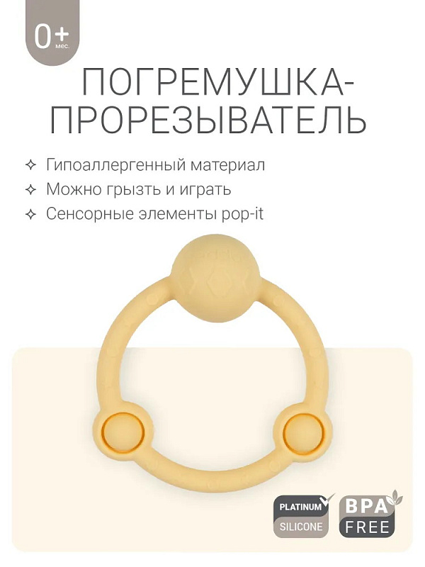 У лёгкой погремушки в виде кольца — эргономичная форма, которая идеально подходит для детских ладошек. Рельефная поверхность массирует дёсны при кусании, но не повреждает их, выполняя функцию прорезывателя. Игрушка развивает моторику и сенсорное восприятие, а элементы pop-it на погремушке-кольце делают игру с ней ещё увлекательнее. Погремушка из гипоаллергенного силикона издаёт успокаивающий звук и развивает ребенка через игру. Спокойные цвета игрушки гармонично впишутся в домашний интерьер.