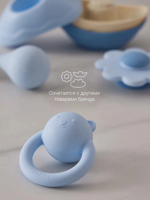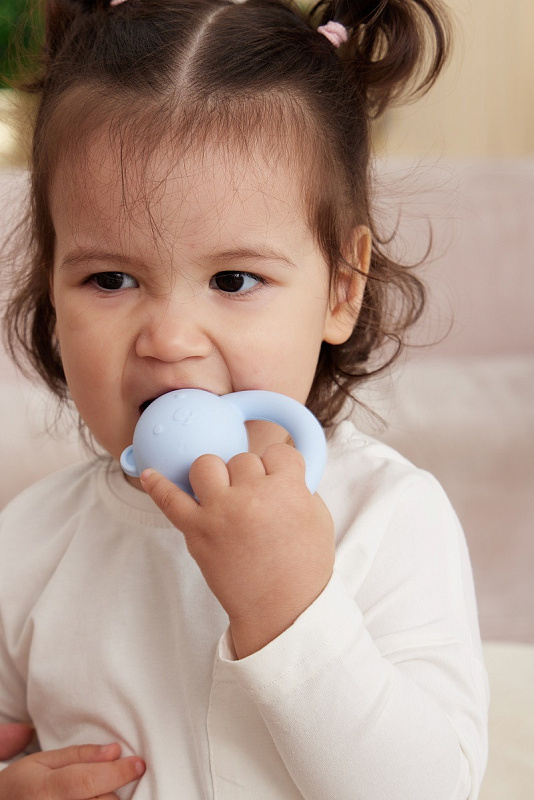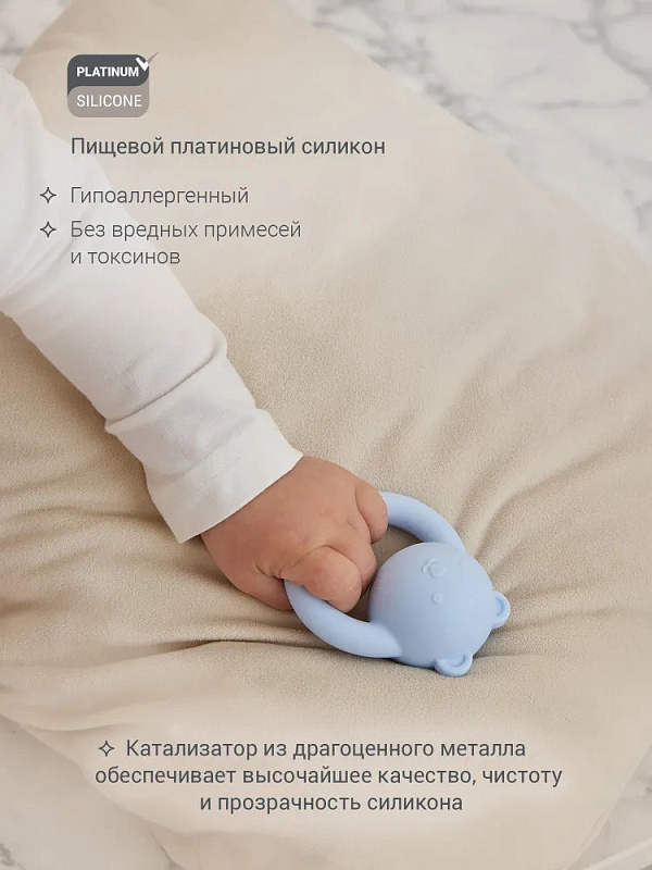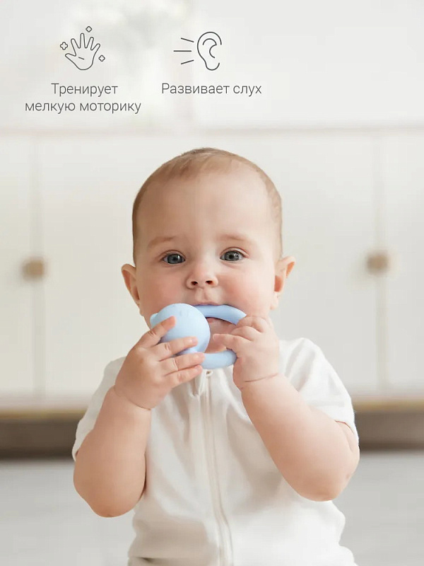Невесомая погремушка с рельефной поверхностью бережно массирует дёсны при кусании, развлекает и успокаивает ребёнка, благодаря деликатному звучанию. Игрушка тренирует мелкую моторику, развивает слух и зрение. Малышу будет удобно держать её в руках с первых дней жизни. Покрытие погремушки — из пищевого Platinum-силикона высочайшего качества, в его составе отсутствуют токсины или вредные примеси. Игрушка выполнена в нежных, пастельных оттенках, гармонично дополняя интерьер детской.