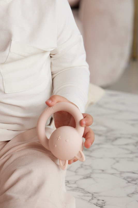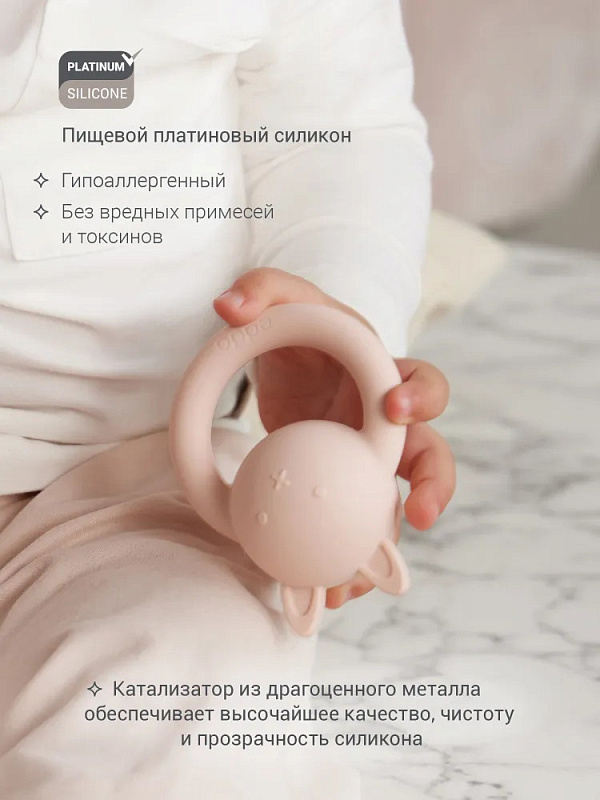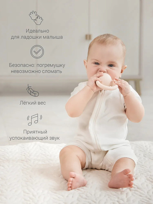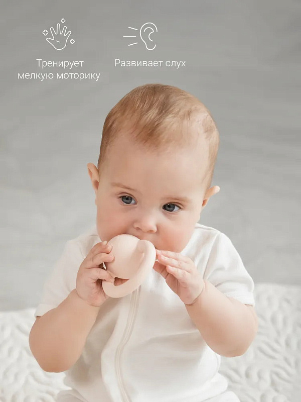 Невесомая погремушка с рельефной поверхностью бережно массирует дёсны при кусании, развлекает и успокаивает ребёнка, благодаря деликатному звучанию. Игрушка тренирует мелкую моторику, развивает слух и зрение. Малышу будет удобно держать её в руках с первых дней жизни. Покрытие погремушки — из пищевого Platinum-силикона высочайшего качества, в его составе отсутствуют токсины или вредные примеси. Игрушка выполнена в нежных, пастельных оттенках, гармонично дополняя интерьер детской.