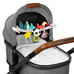 С помощью специальных зажимов растяжка крепится к коляске, автокреслу, кроватке, манежу или игровой дуге, поэтому она отлично подходит как для дома, так и для путешествий.