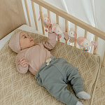 С помощью специальных зажимов растяжка крепится к коляске, автокреслу, кроватке или манежу, поэтому она отлично подходит как для дома, так и для путешествий.