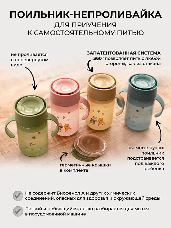 Поильник Suavinex 360° предотвращает любые проливания напитка, а благодаря мягкому и гибкому материалу бережет зубы и десны малыша. Пить свой напиток малыш может по всей окружности - жидкость равномерно распределяется под крышкой, под каким бы углом ребёнок не держал поильник.