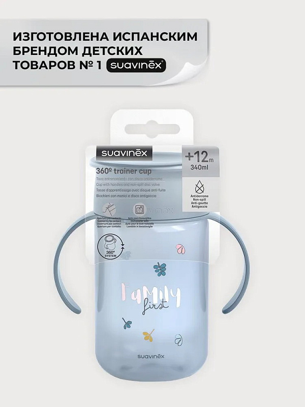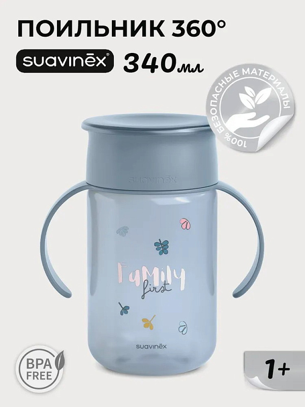 Легкий и удобный поильник-непроливайка 360° Suavinex станет отличным помощником в приучении малыша к самостоятельному питью.