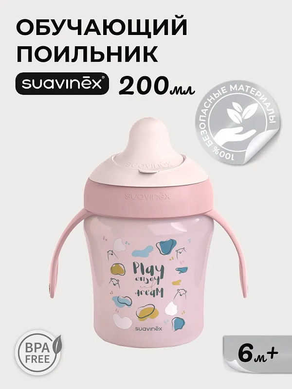 Удобный поильник-непроливайка с ручками и жестким носиком Suavinex идеален для перехода от бутылочки к взрослой чашке и приучения малыша к самостоятельности.