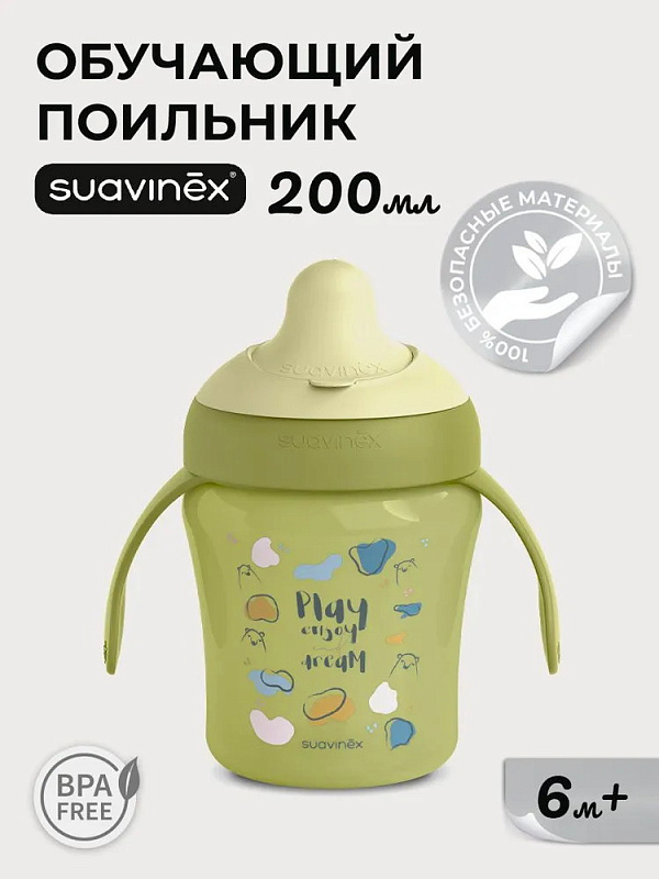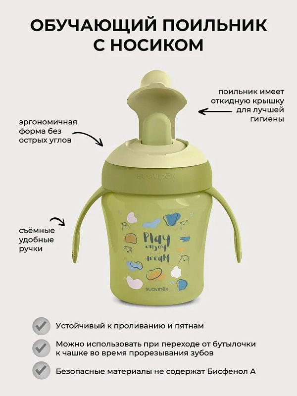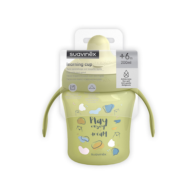 Удобный поильник-непроливайка с ручками и жестким носиком Suavinex идеален для перехода от бутылочки к взрослой чашке и приучения малыша к самостоятельности.