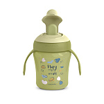 Поильник имеет специальную герметичную откидкую крышку, которая предотвращает проливание. Жесткий носик способствует правильному формированию навыков питья, особенно во время прорезывания зубов.