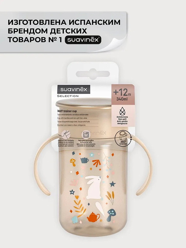 Легкий и удобный поильник-непроливайка 360° Suavinex станет отличным помощником в приучении малыша к самостоятельному питью.