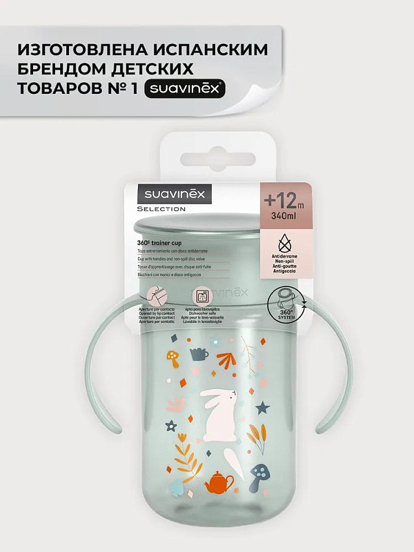 Легкий и удобный поильник-непроливайка 360° Suavinex станет отличным помощником в приучении малыша к самостоятельному питью.
