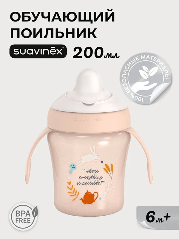 Удобный поильник-непроливайка с ручками и жестким носиком Suavinex идеален для перехода от бутылочки к взрослой чашке и приучения малыша к самостоятельности.