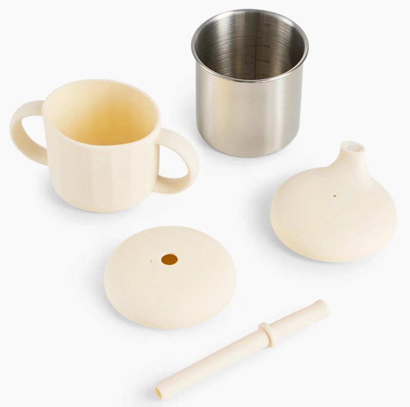Особенности крышка с мягкой трубочкой, крышка с носиком, стальной стакан с мерной шкалой, не бьётся и не впитывает запахи, безопасные материалы (не содержит Бисфенол- A), с ручками
