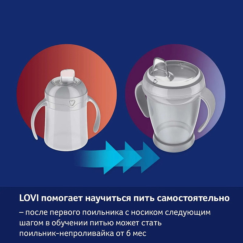 Первый поильник LOVI Easy Switch — идеальный поильник для того, чтобы научить малыша пить самостоятельно. Он позволяет быстро и легко перейти с бутылочки на поильник, а в последствии на чашку.