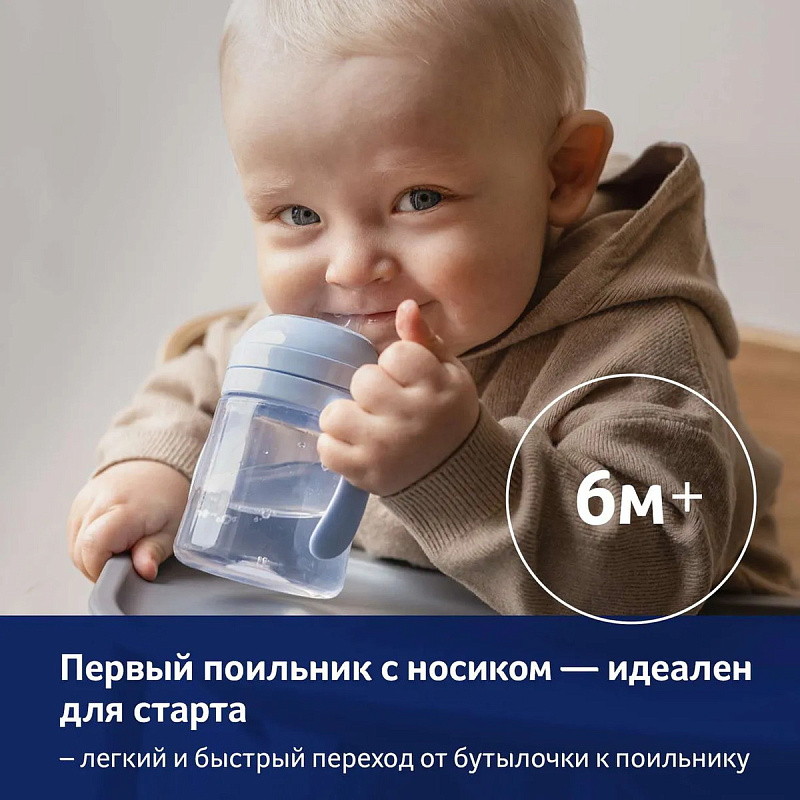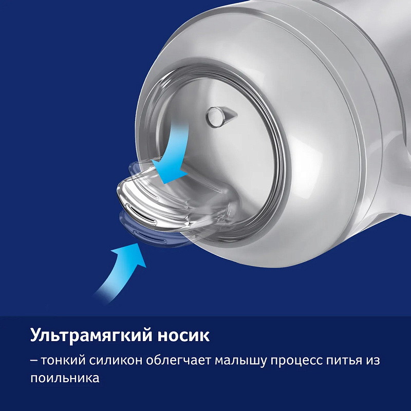 Поильник легкий и очень удобный — как раз для маленьких ручек. Благодаря ультрамягкому носику в форме ложечки учиться будет намного проще.