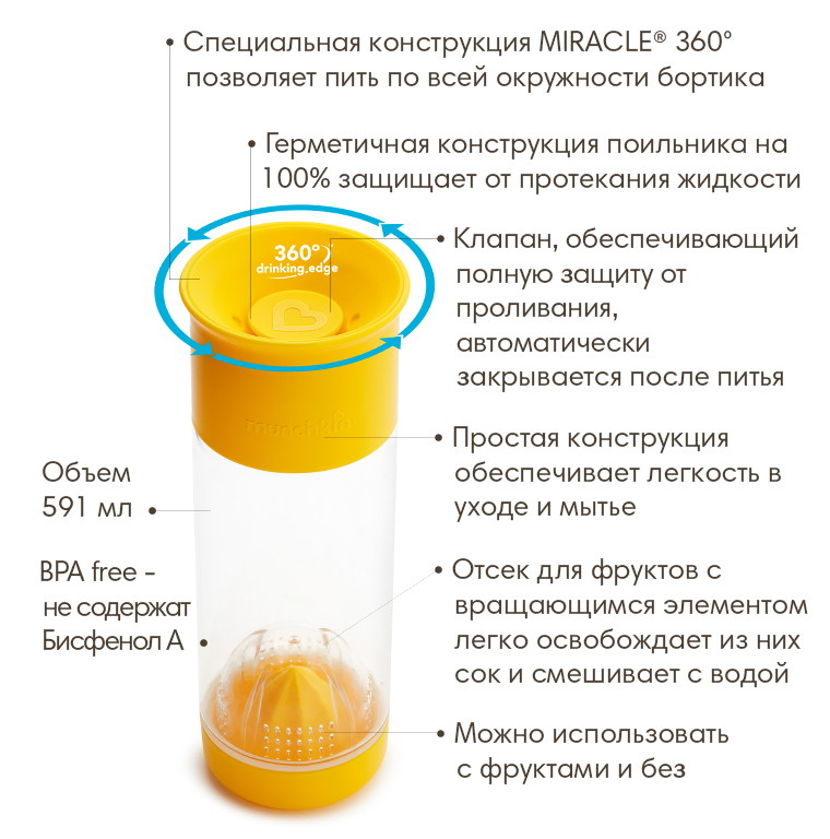 - специальная конструкция MIRACLE® 360° ° позволяет пить по всей окружности бортика