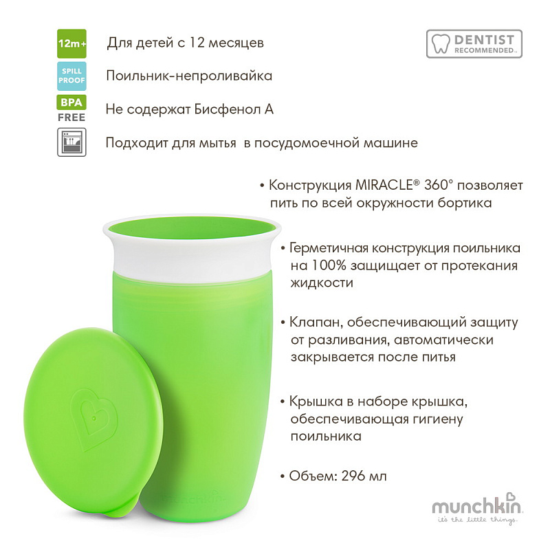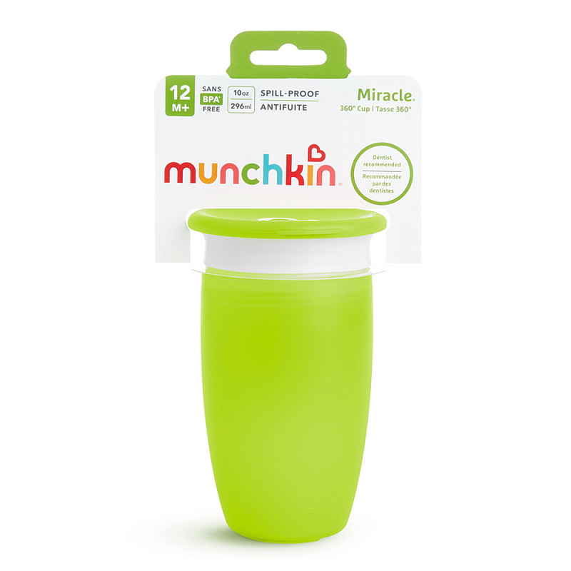 Поильник непроливайка Munchkin Miracle 360° с крышкой 296 мл. с 12 мес. 12096/51860G зеленый