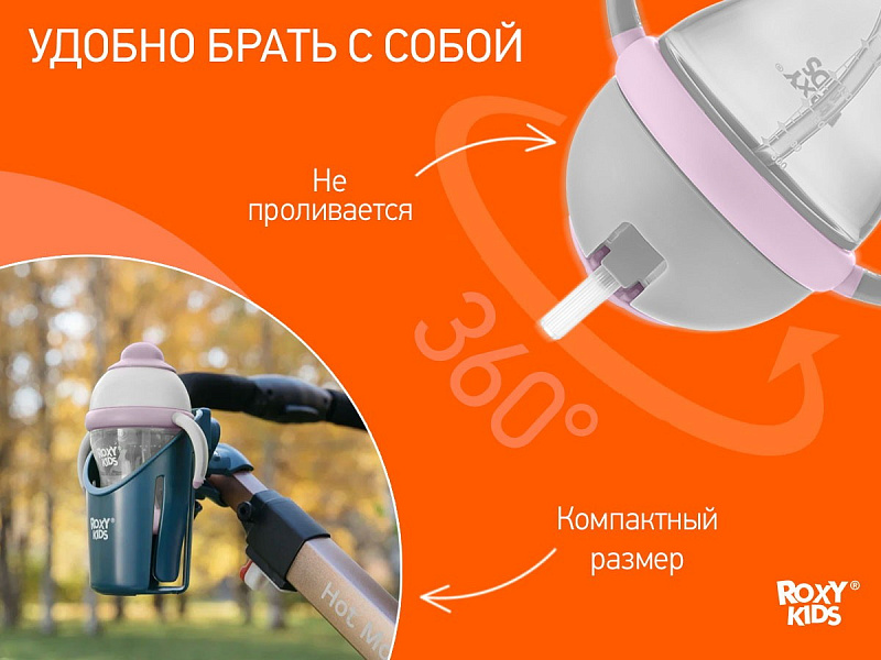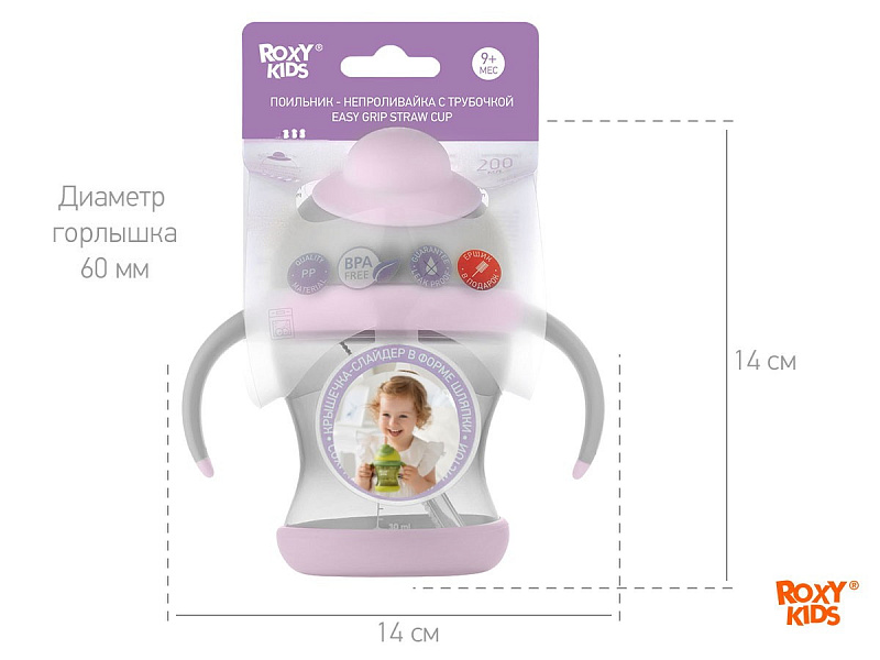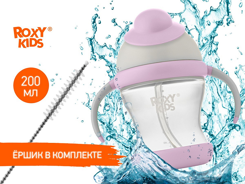 Поильник-непроливайка Roxy-Kids с трубочкой RFD-008-Gr серо-лавандовый