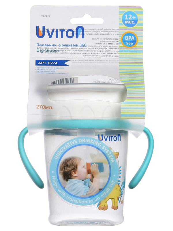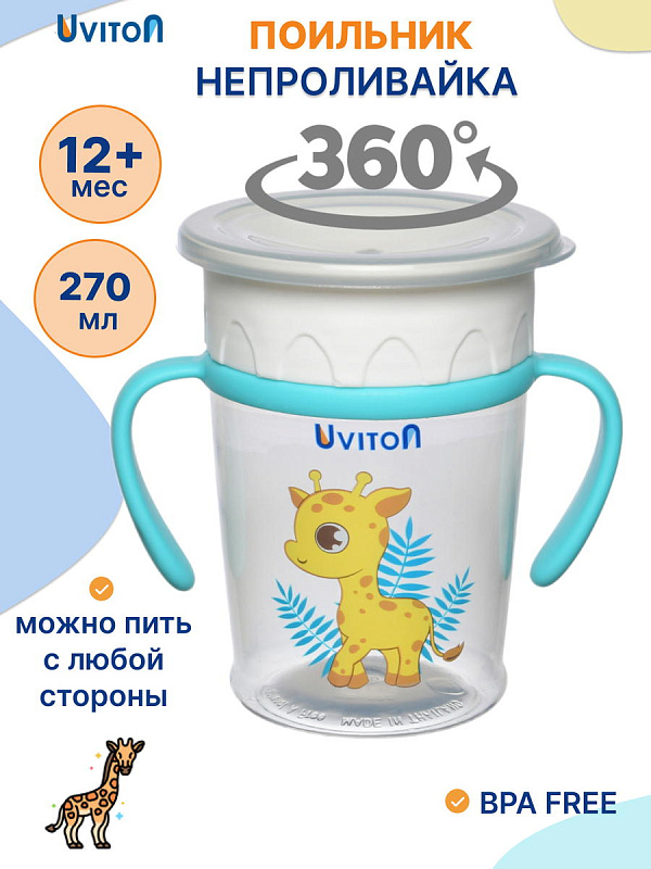 Поильник непроливайка 360 тренировочный от Uviton – позволяет ребенку легко и быстро привыкнуть пить с края как из обычной кружечки.