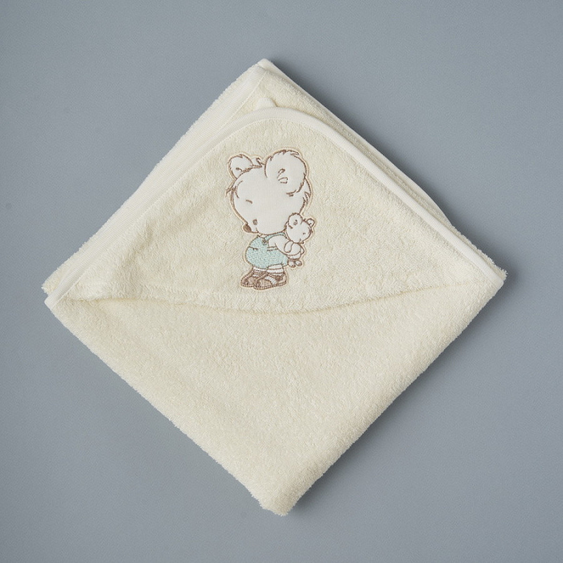 Полотенце для купания Little Star с уголком 100х100 см 6165 мишка мед, крем
