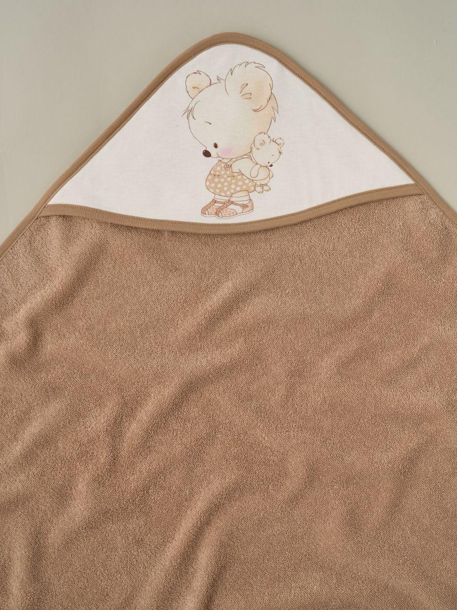 Полотенце для купания Little Star с уголком махра 100х100 см 61651 мишка малыш, бежевая махра, бежевый