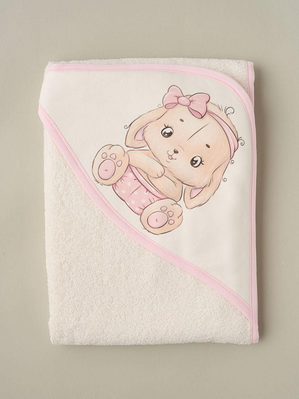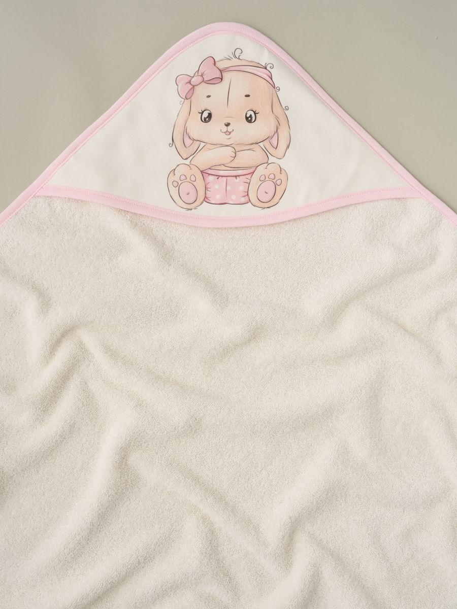 Полотенце для купания Little Star с уголком махра 100х100 см 61651 зайка лапочка, крем махра, крем