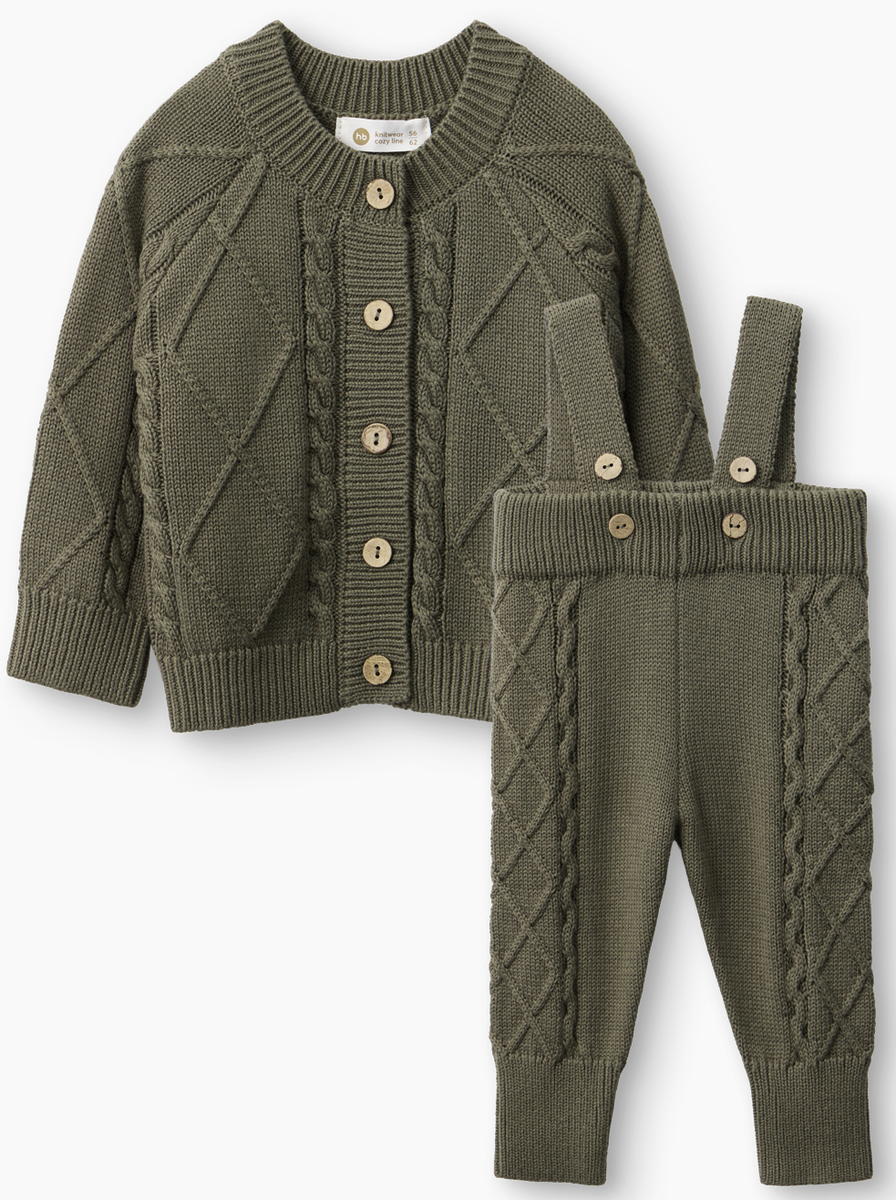 Костюм для новорожденных - практичное решение для повседневных прогулок или ежедневной носки в любое время года. Вязаный костюм двойка: полукомбинезон и кардиган отличается стильными расцветками и комфортной посадкой, подходит для мальчиков и девочек.