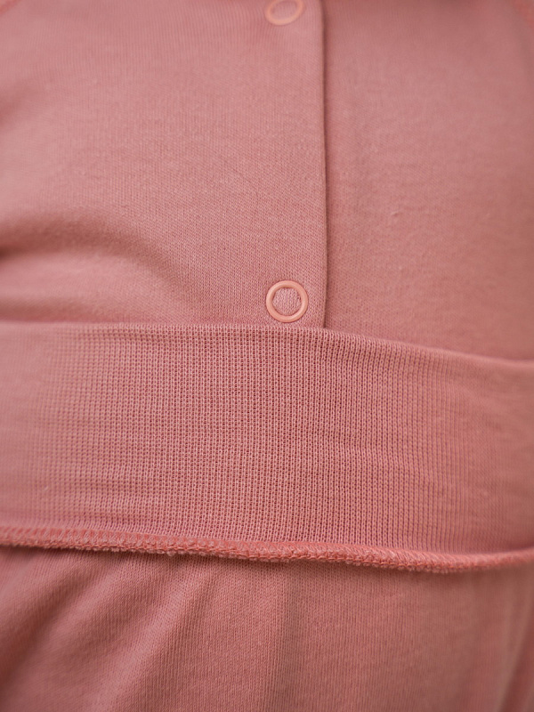 Ползунки на широкой резинке для новорожденного сшиты из однотонного интерлока швами наружу. Швы украшены отделкой "краше".