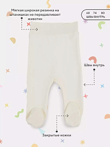 Ползунки-штанишки из этой коллекции снабжены закрытыми носочками и широкими мягкими резиночками, которые не будут давить на крохотный животик.