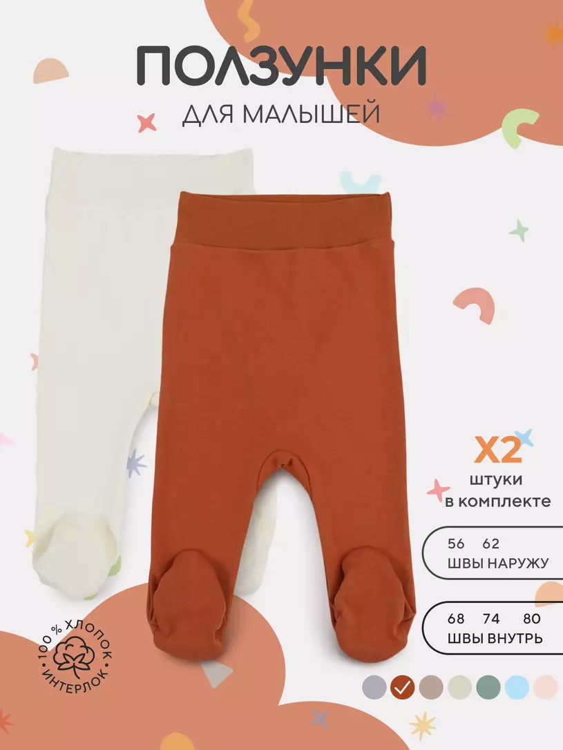 Ползунки-штанишки из этой коллекции снабжены закрытыми носочками и широкими мягкими резиночками, которые не будут давить на крохотный животик.