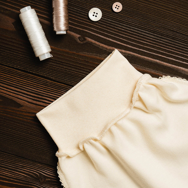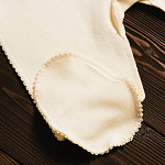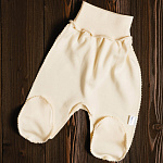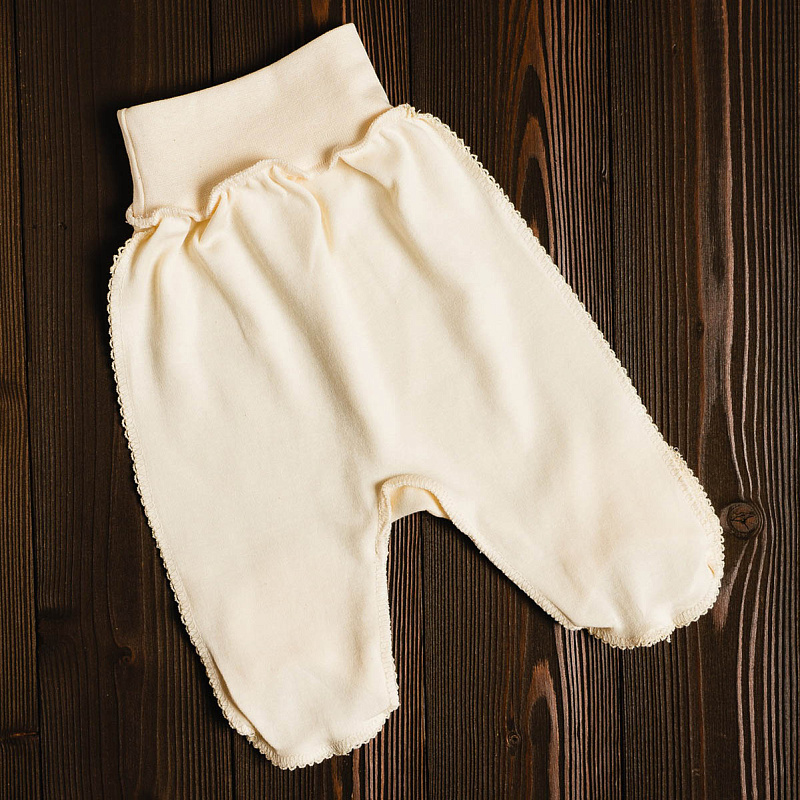 Трикотажные ползунки с широкой резинкой на поясе не стесняют движений. Швы наружу не придают дискомфорта. Ткань хорошо пропускает воздух благодаря натуральному составу.