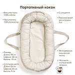 Верхняя часть кокона изготовлена из 100% хлопка и легко снимается, её можно стирать в машине. Мягкий поролоновый матрас устанавливается поверх прочной легкой пластины и в сочетании с очень длинными ремнями позволяет легко и безопасно перемещать кокон с места на место.