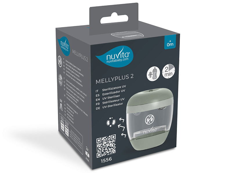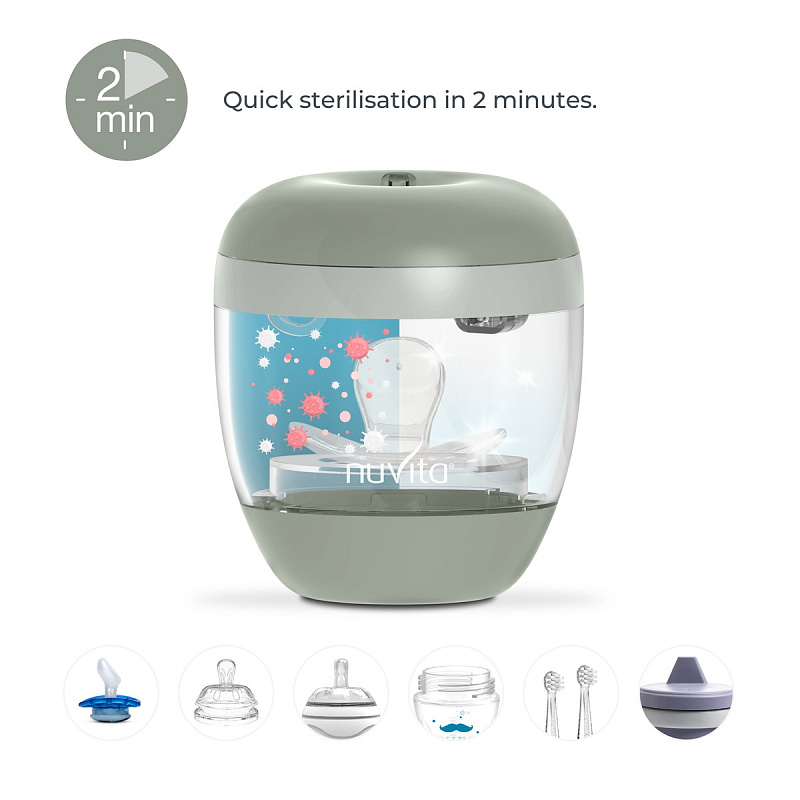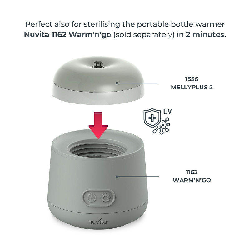 MellyPlus — это портативный ультрафиолетовый стерилизатор Nuvita, созданный для быстрой и эффективной стерилизации пустышек, сосок и бутылочек любых видов.