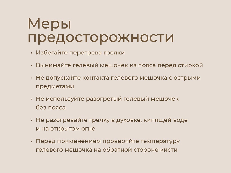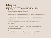 текстиль – 100% лавсан, грелка – ПВХ, внутри – глицерин 25%, карбоксиметилцеллюлоза натрия 5%, вода 70%