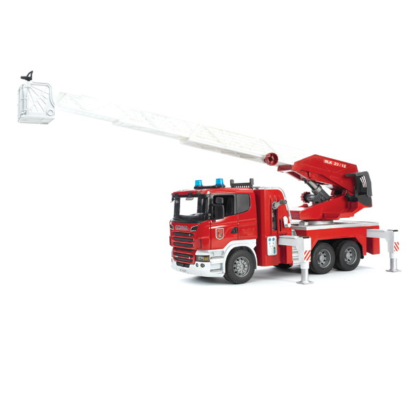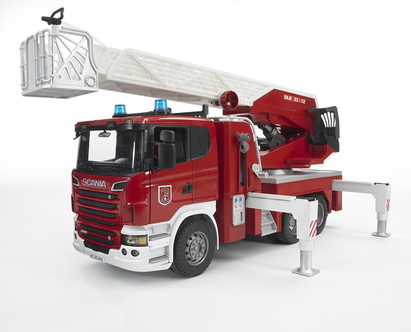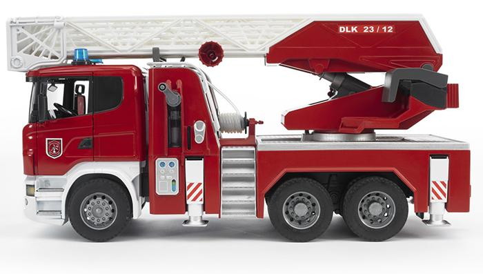 Пожарная машина Bruder Scania с выдвижной лестницей и помпой с модулем со световыми и звуковыми эффектами