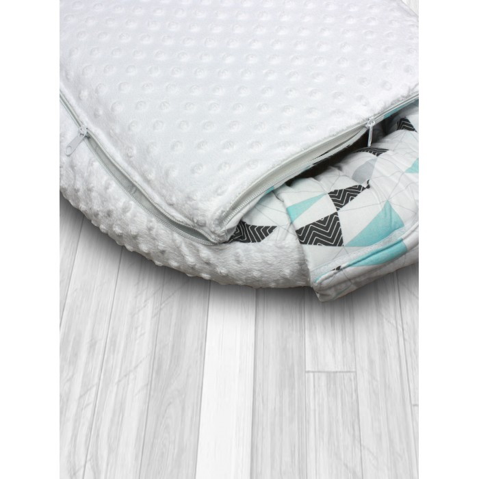 Позиционер имеет муфту закрывающую завязки, обеспечивая безопасность для малыша и эстетический внешний вид изделия.