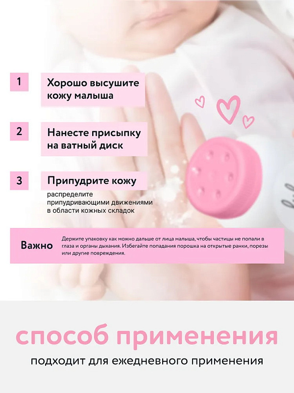 Присыпка детская для новорожденных торговой марки PL / LULU — это эффективное и безопасное средство для ухода за нежной кожей малыша с первых дней жизни. Присыпка детская помогает предотвратить появление опрелостей и раздражения, а также обеспечивает комфорт и защиту кожи ребёнка.