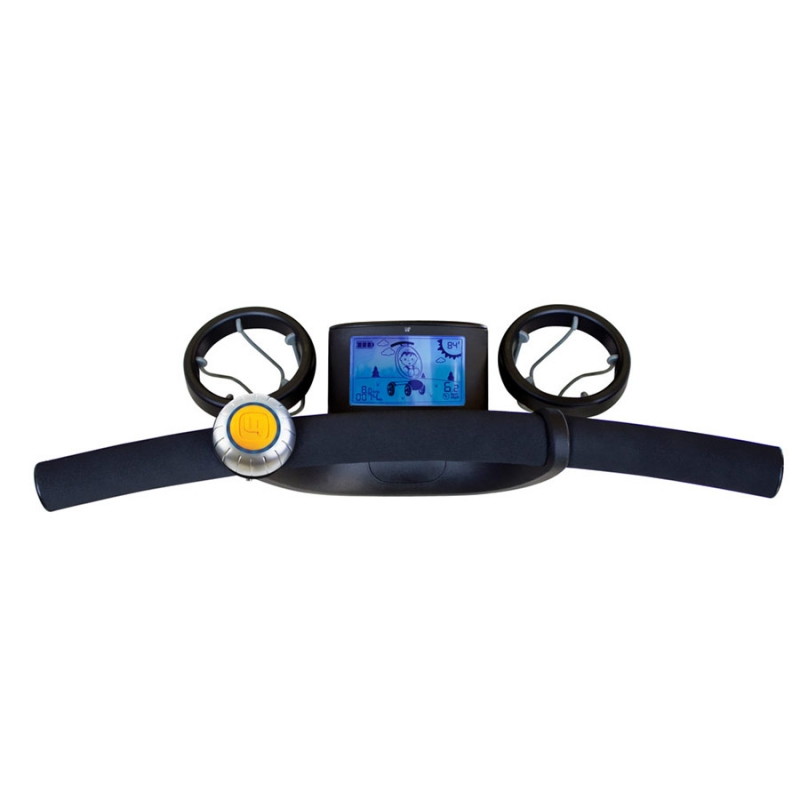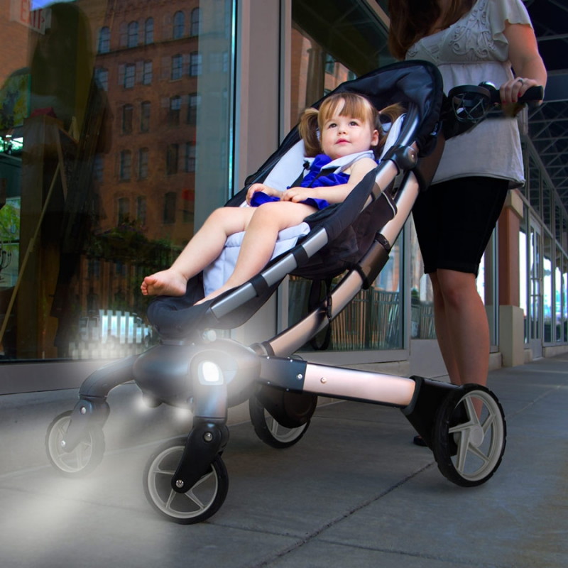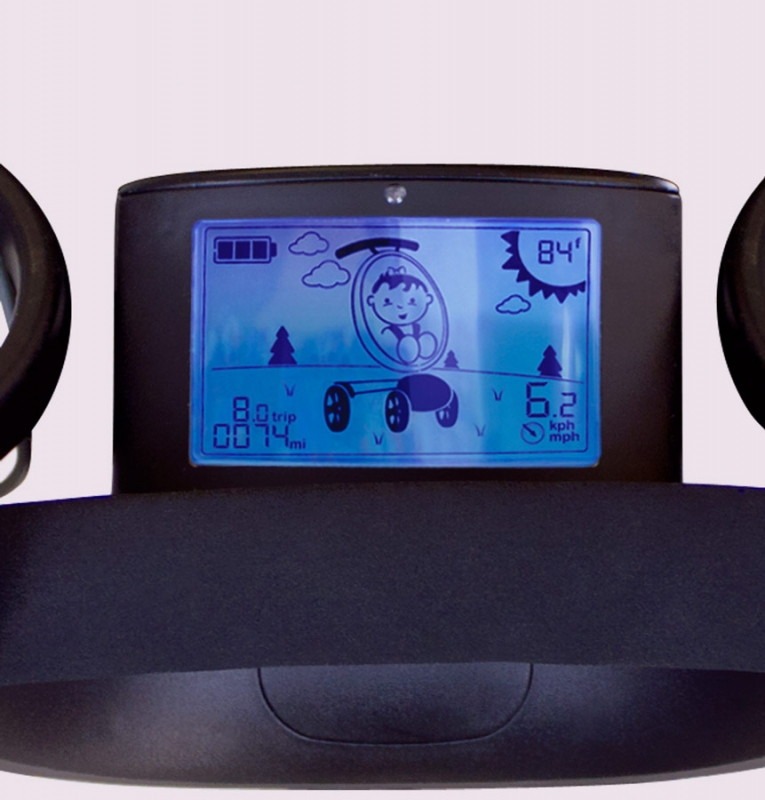 в коляске встроенный генератор, который в процессе движения коляски заряжает аккумулятор для дальнейшей работы коляски - встроенные фары, информационный ЖК дисплей.