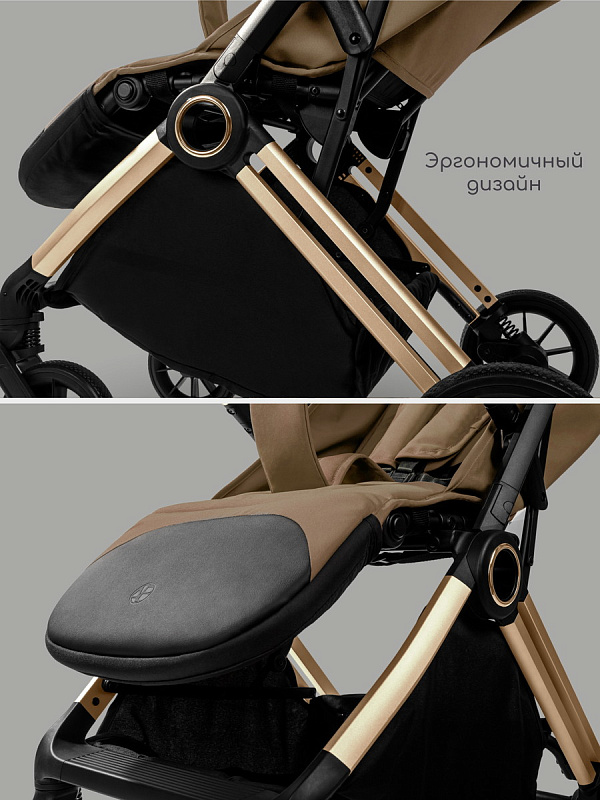 Ручки из экокожи приятны на ощупь и обеспечивают удобный захват, а оптимальная высота родительской ручки позволит вам наслаждаться прогулкой. Откидной бампер обеспечит дополнительную безопасность и удобство при посадке и высадке ребенка.