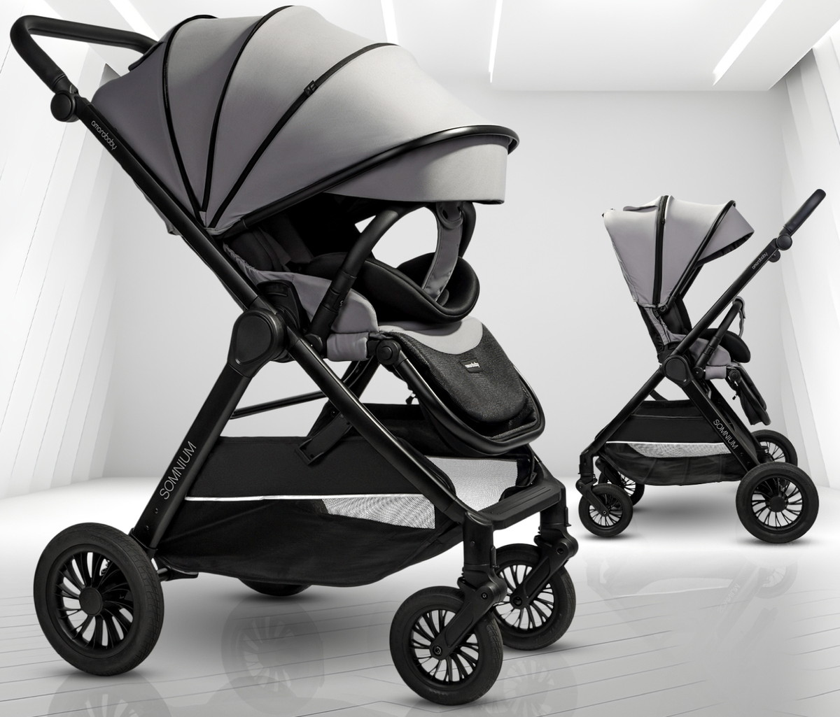 Универсальная прогулочная коляска Amarobaby Somnium с реверсивным блоком. Комфортная и удобная коляска для детей от 7-ми месяцев. Детская коляска подходит для ежедневных прогулок в любой сезон. Особенностью коляски является реверсивный прогулочный блок-можно развернуть как по ходу движения, так и лицом к маме. Благодаря большим колесам повышена маневренность и проходимость. Передние колеса вращаются на 360 градусов с возможностью блокировки. Наличие амортизации на всех колесах обеспечивает плавный ход.