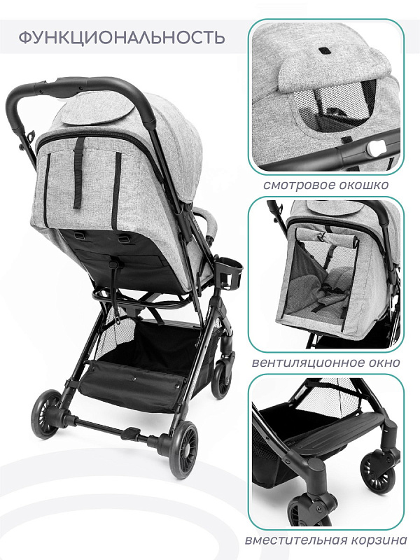 - Сзади у коляски большое сетчатое окно для лучшей вентиляции в жаркое время года, закрывающееся на молнии.