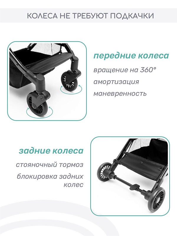 - Передние колеса поворотные на 360 градусов