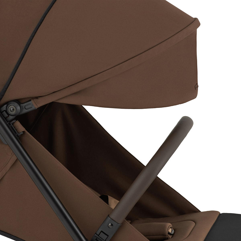 Бампер коляски можно полностью снять одной рукой, поочередно отсоединяя его с каждой из сторон.