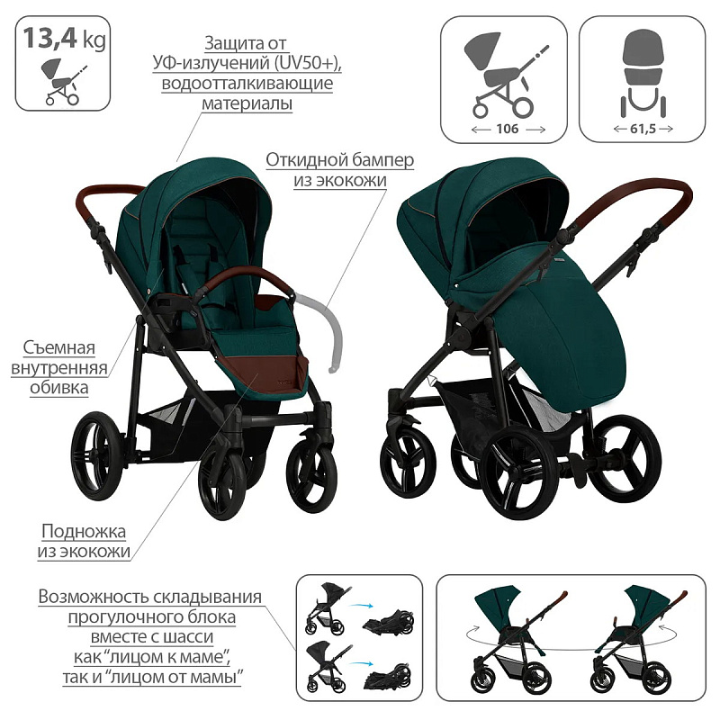 Обивка коляски: водоотталкивающая, съемная, с УФ-защитой 50+.